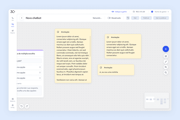 Seus cards eram fixos e não permitiam muita flexibilidade na montagem de um fluxo de chatbot.