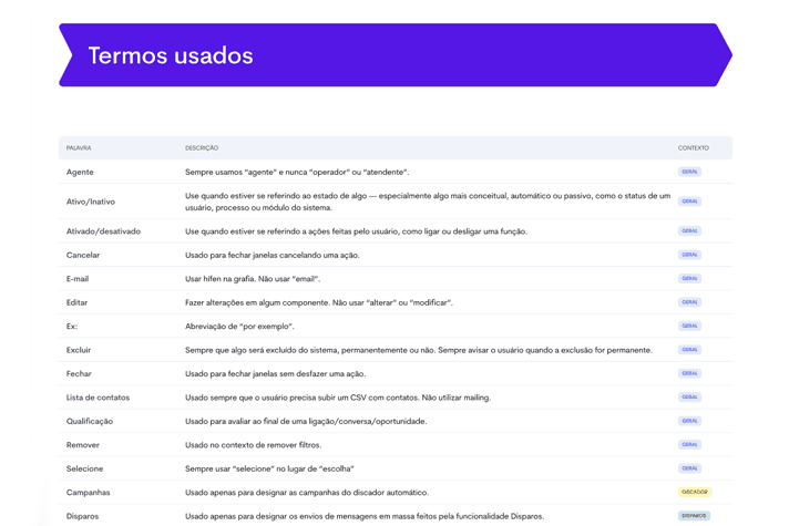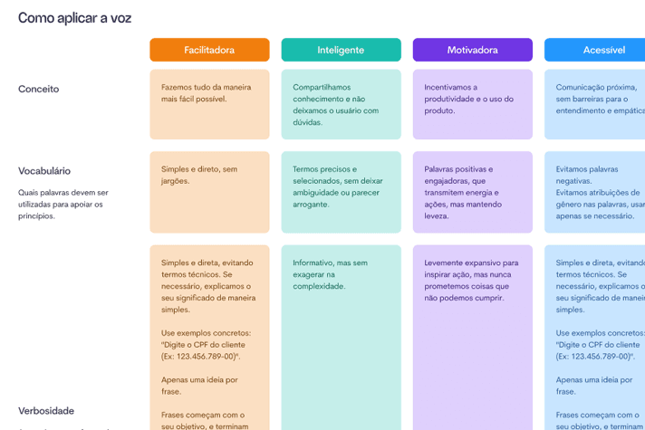Desenvolvimento proativo de Manual de Tom e Voz para padronizar a linguagem do produto. Eliminei inconsistências em microcopys e termos técnicos, criando uma unidade de comunicação e reduzindo confusões na experiência do usuário.
